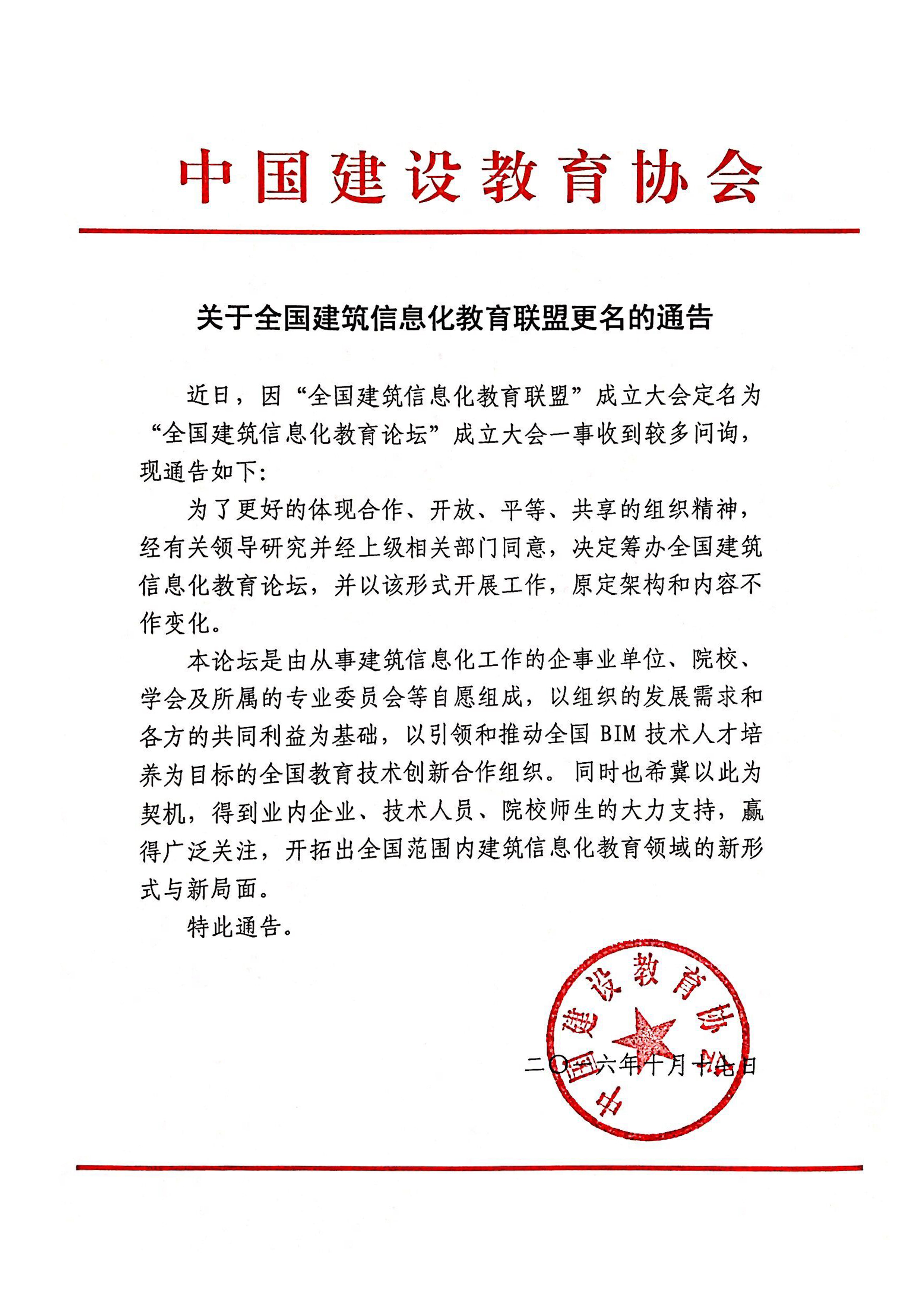 关于全国建筑信息化教育联盟更名的通告
