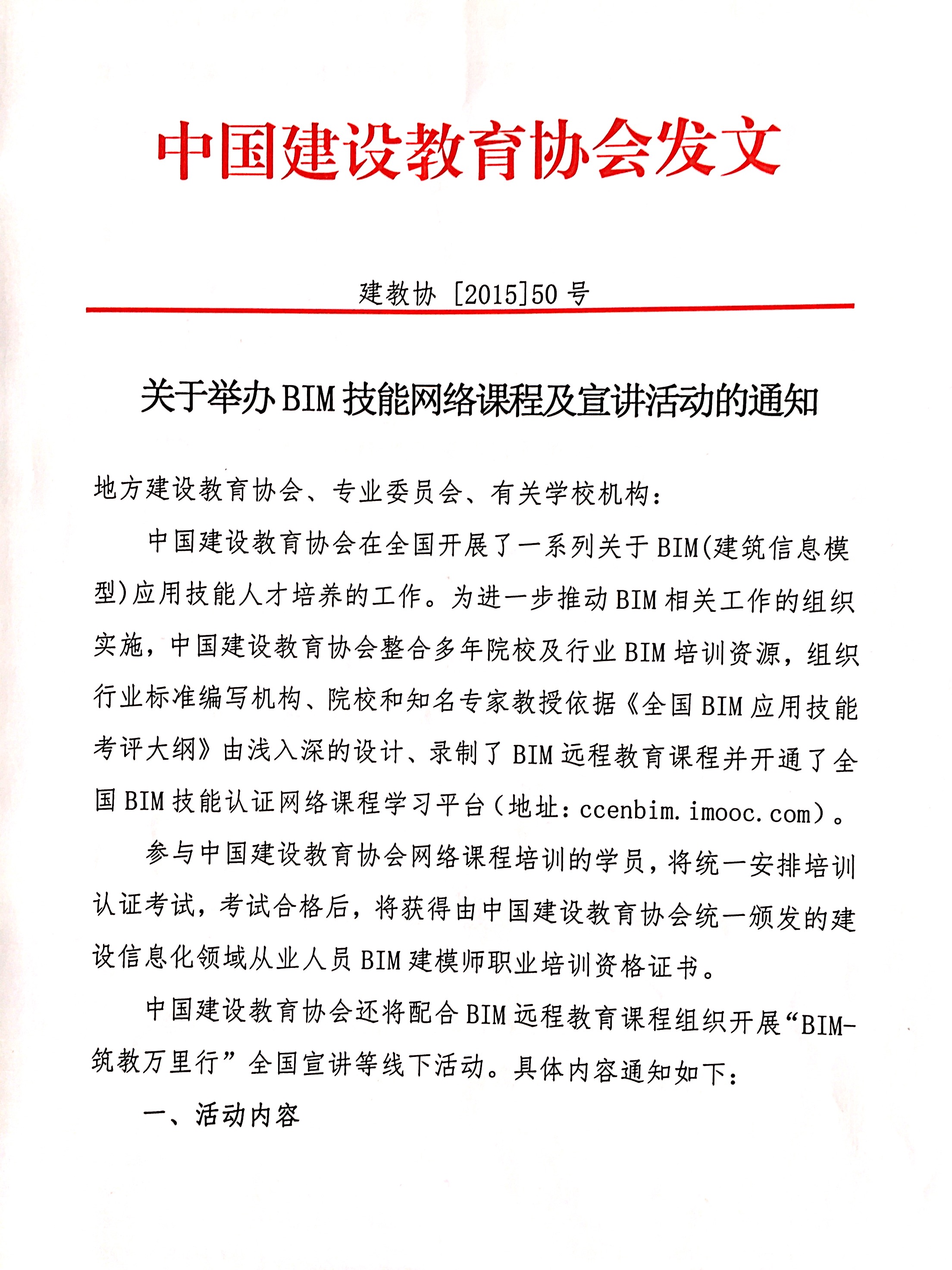关于举办BIM技能网络课程及宣讲活动的通知