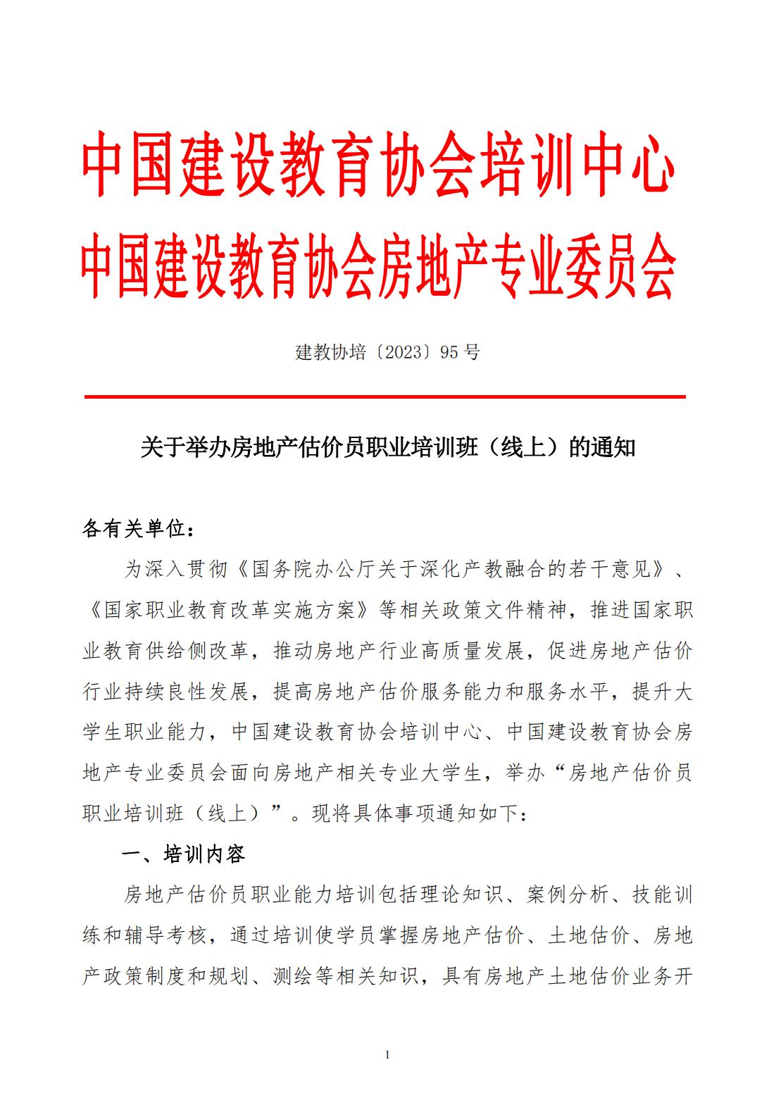 建教协培〔2023〕95号关于举办房地产估价员职业培训班(线上)的通知