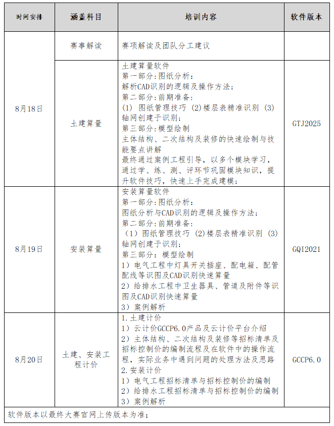 加深参赛指导教师及学生对2025年全国数字建筑创新应用大赛考试大纲的理解明确大赛考试方向、重点,掌握大赛相关软件的基础应用实操,强化应用能力,熟悉比赛实际的考试流程及内容。