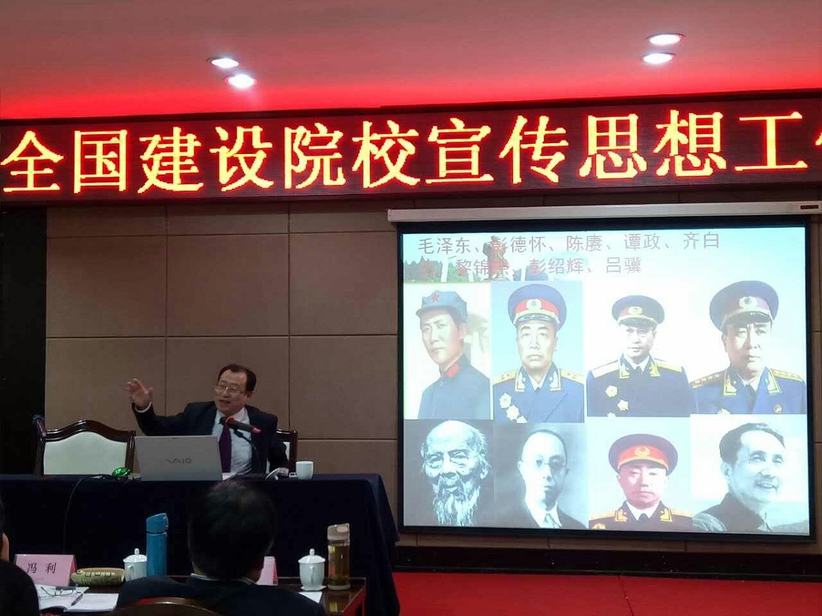 为期两天的全国建设院校宣传思想工作干部教师培训班的理论学习与研讨交流活动已经圆满结束了,马上就要进入大家期待的中国革命实践教育阶段了。我们这期培训班,结合建设院校实际,围绕深入学习习近平总书记在庆祝中国共产党成立95周年大会上的讲话和在纪念红军长征胜利80周年大会上的讲话精神,听取了刘建平教授《红色文化与理想信念教育》和刘国华教授《当前我国意识形态领域的斗争态势及其对策》的专题讲座。两位主讲人联系学校宣传思想工作、学生教育管理工作和思想政治理论课建设工作的实际,从理论与实践的结合上分析和论证了学校思想政治教育的重要意义,报告既有深刻的理论分析,又有深入的实践总结,也富有鲜明的地域特色,同志们对两个报告给予了很高的评价,并结合建设院校的工作特点,开展了热烈的研讨交流,分享了近年来的工作经验,大家一致感到这样的培训学习很受启发、很有助益。接下来,我们还要到韶山中国革命实践教育基地接受教育,大家一定会受到强烈的震撼、启迪和激励。