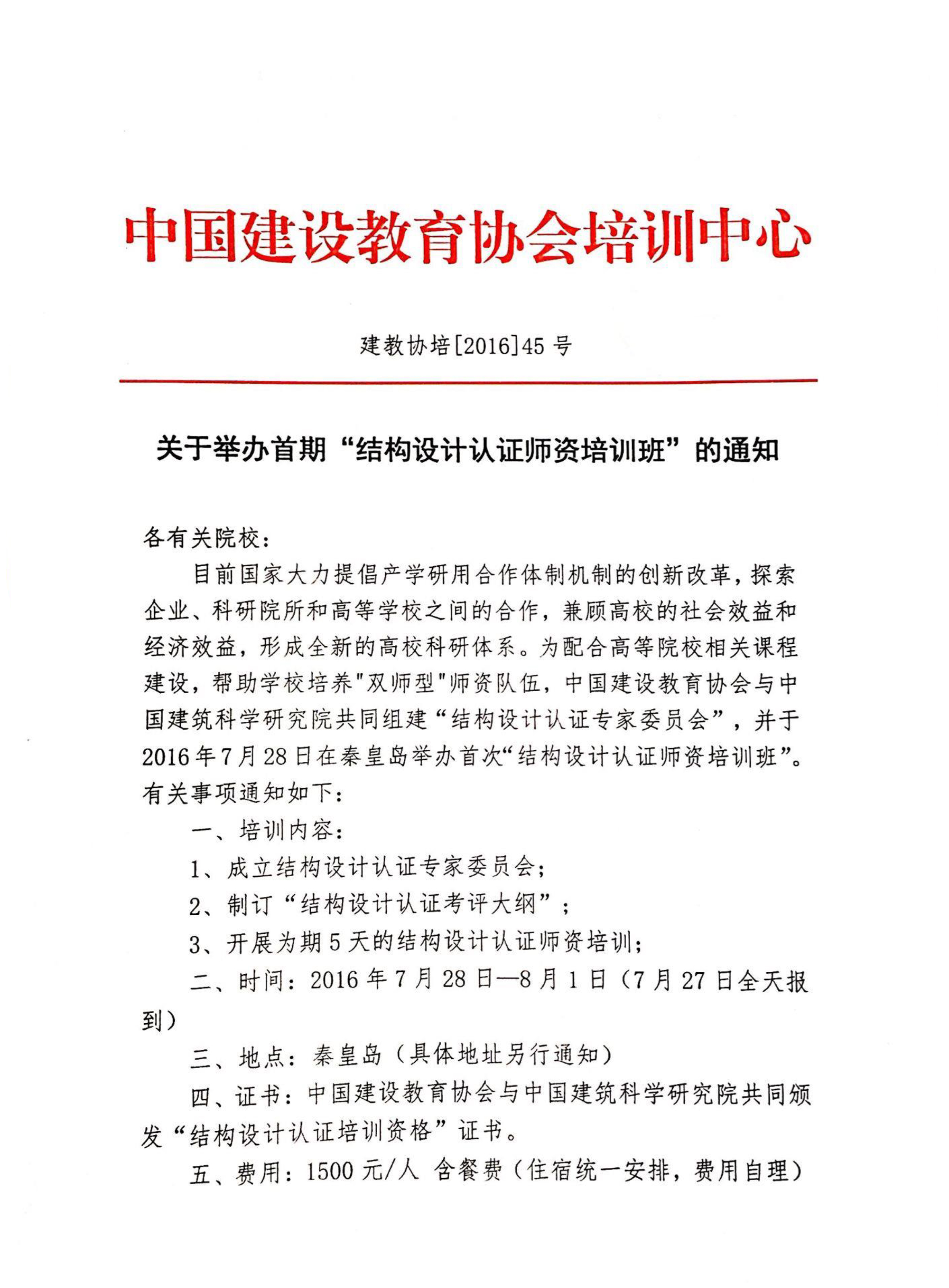关于举办首期“结构设计认证师资培训班”的通知
