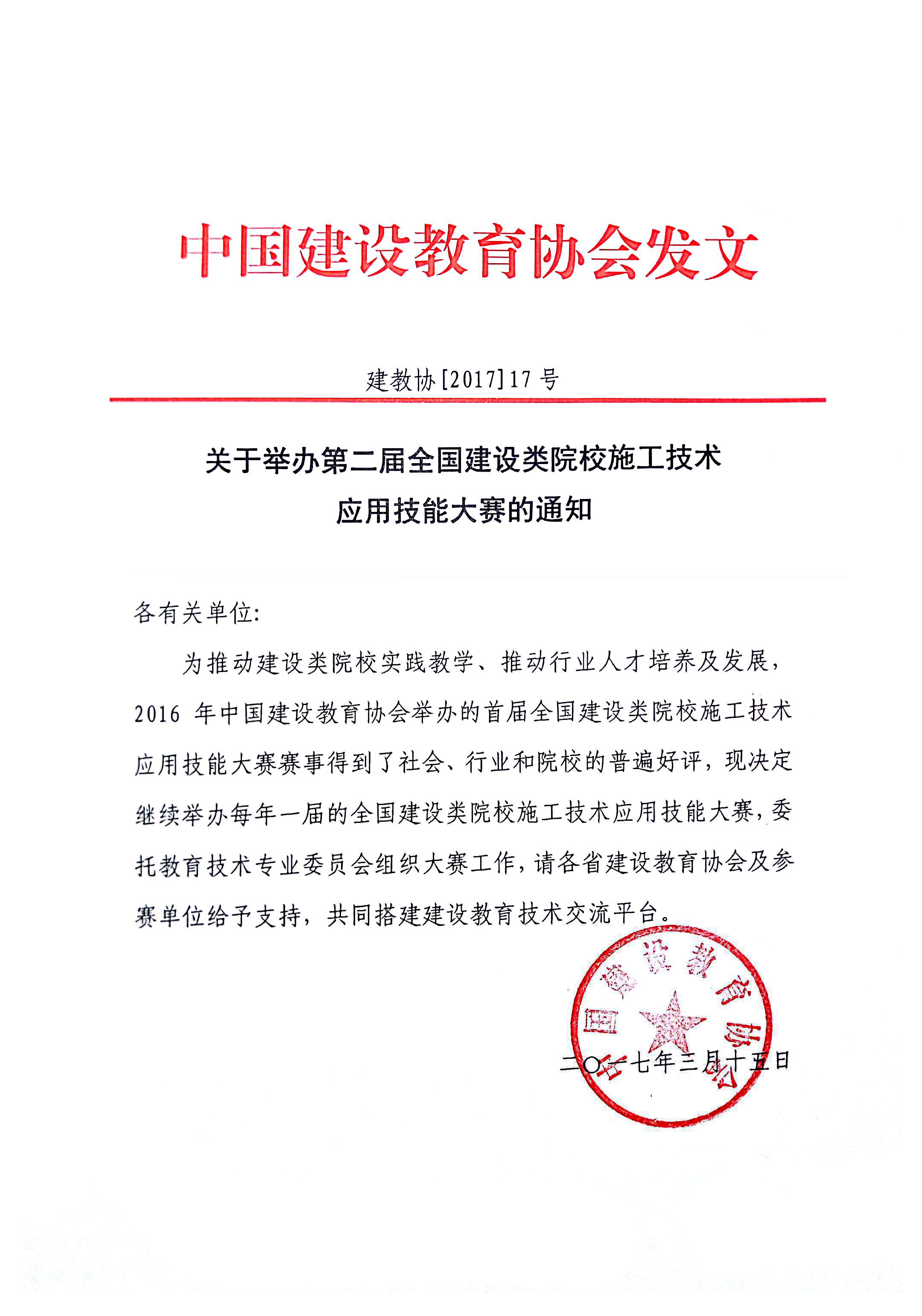 关于举办第二届全国建设类院校施工技术应用技能大赛的通知