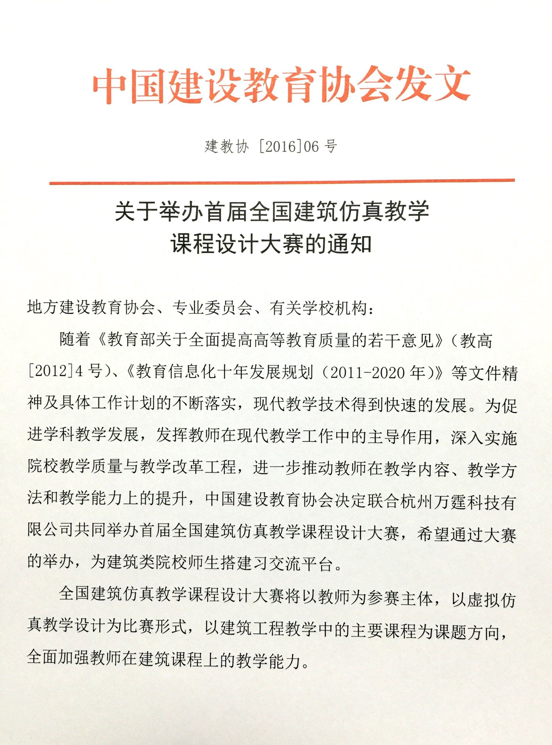 关于举办首届全国建筑仿真教学课程设计大赛的通知
