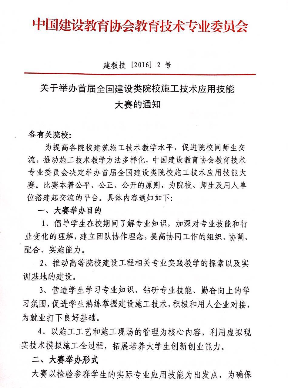 关于举办首届全国建设类院校施工技术应用技能大赛的通知