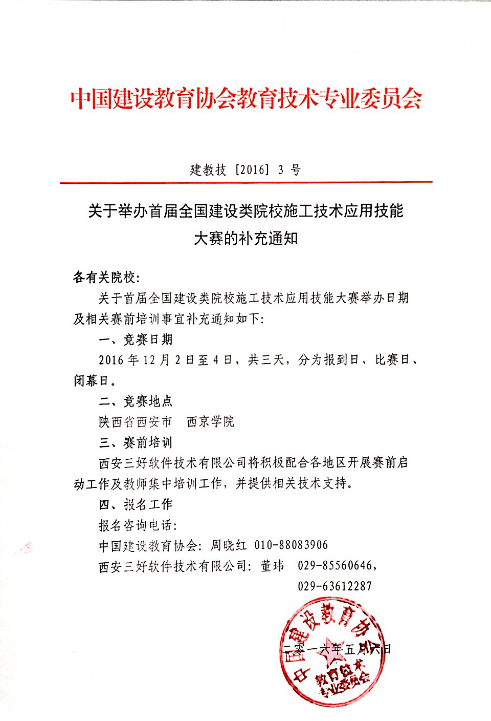 关于举办首届全国建设类院校施工技术应用技能大赛的补充通知