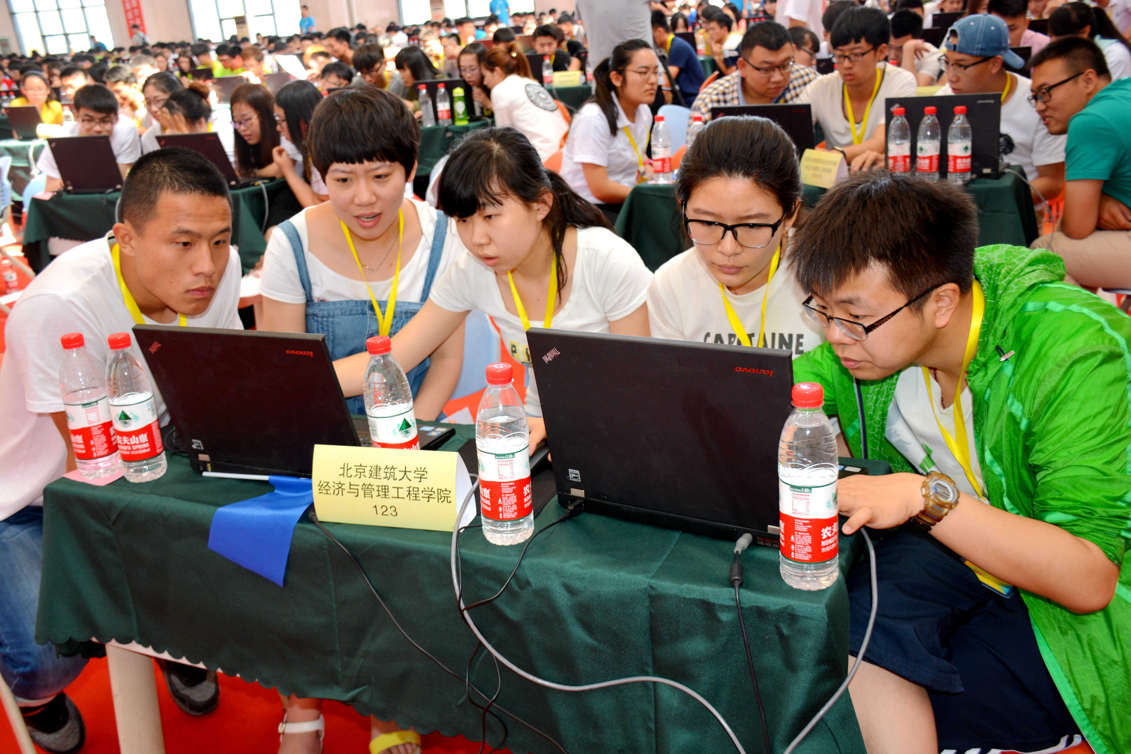 学生进入紧张的比赛