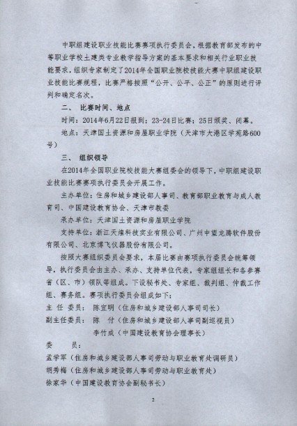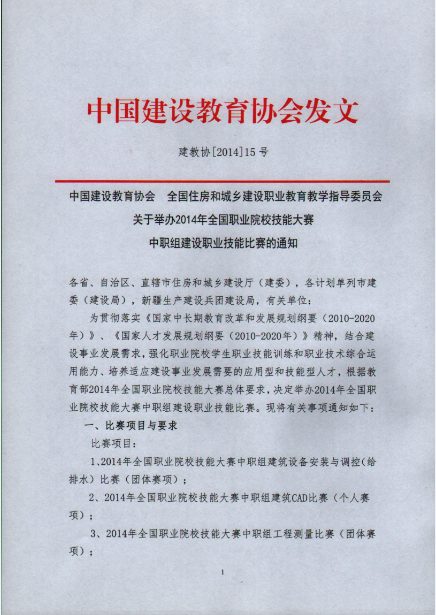 Beat365中文官方网站协会 全国住房和城乡建设职业教育教学指导委员会关于举办2014年全国职业院校技能大赛中职组建设职业技能比赛的通知