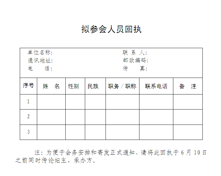为了保证论坛顺利举办,请将拟参会人员回执和电子版论文及ppt电子文档通过传真或电子邮件同时传主、承办方。