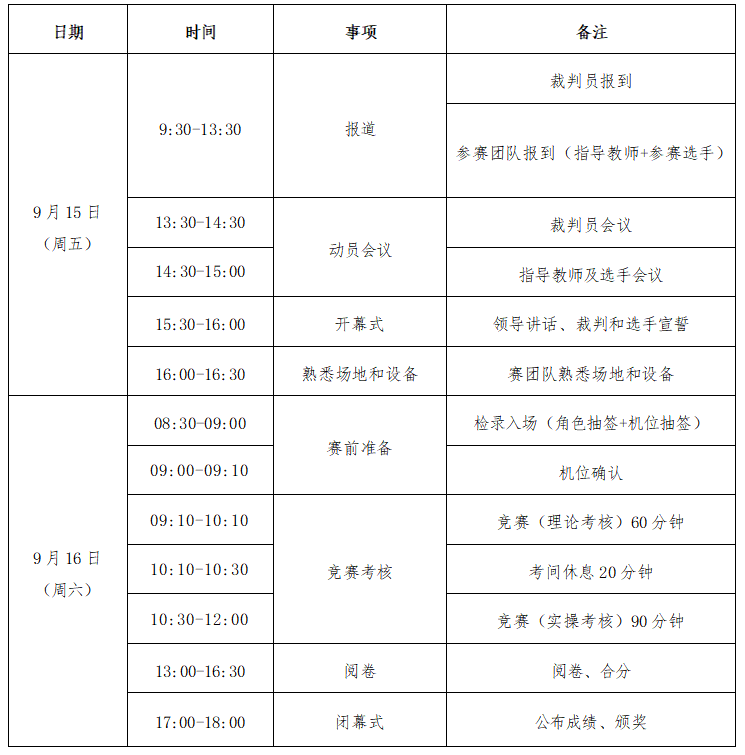 6.参赛日程大致如下: