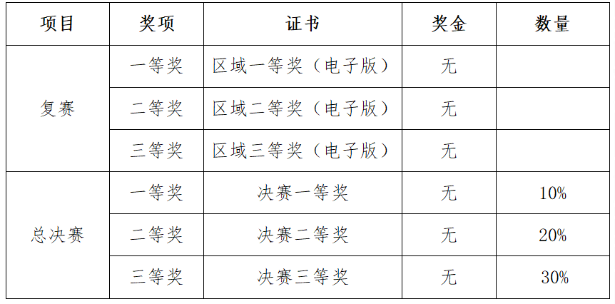 形式:各参赛高校在校内完成晋级复赛队伍选拔,选拔比例为该校报名总人数30%,选拔方式由各参赛学校结合大赛赛题自定义执行;