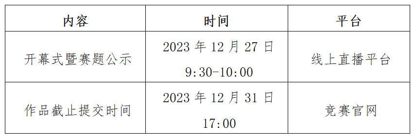本次大赛采用线上方式进行。各参赛团队根据各赛项赛题,在规定时间内按要求完成作品成果文件,由大赛组委会组织评审专家进行评审。