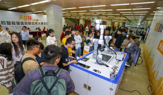 为了让参赛师生深入了解智能建造领域前沿技术在学科建设中的重要性,大赛组委会特别组织参赛师生参观体验“智能建造实训新品体验站”,现场观摩了智能施工机器人实训平台、AIoT实训台、智能喷涂机器人等新技术产品及应用。