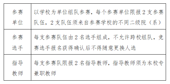 注:1.本届竞赛限定参赛队规模,按报名顺序排序,额满为止;